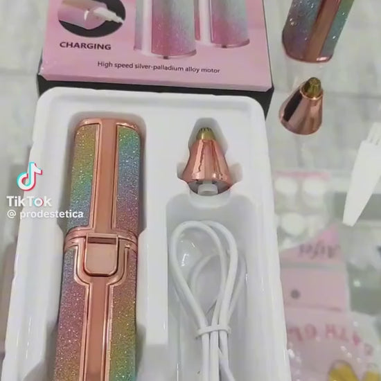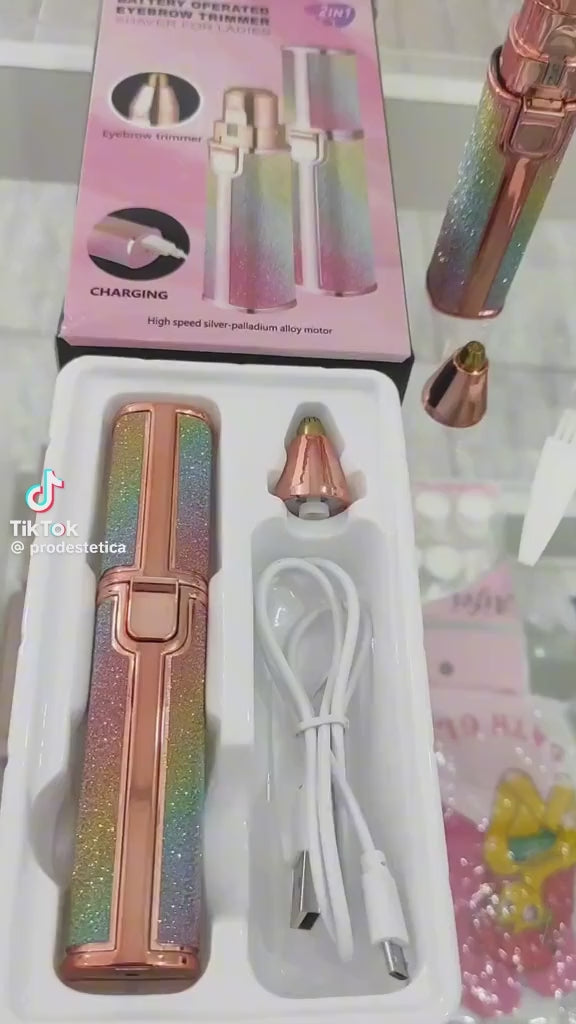 ESPECIFICACIONES: * Material de la hoja: Acero inoxidable *Rango de recorte: 0,5 - 3 mm * Medidas: 2cm*12,5cm * Genero: Mujer * Requiere: Baterías AA 1.5V 2 W * Color predominante: Rosado (arcoiris) PAQUETE INCLUYE: * Removedor Depilador facial 2 en 1 Blawless HX-203A * 1 Cepillo de limpieza * 1 Manual de instrucciones